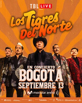 Este 13 de septiembre la legendaria agrupación de música mexicana Los Tigres del Norte llega al mítico Movistar Arena para entregarle al país una presentación en exclusiva la cual promete traer todos sus clásicos y nuevos éxitos en un show a la altura que los jefes de jefes tienen acostumbrados a sus fieles seguidores en Colombia.