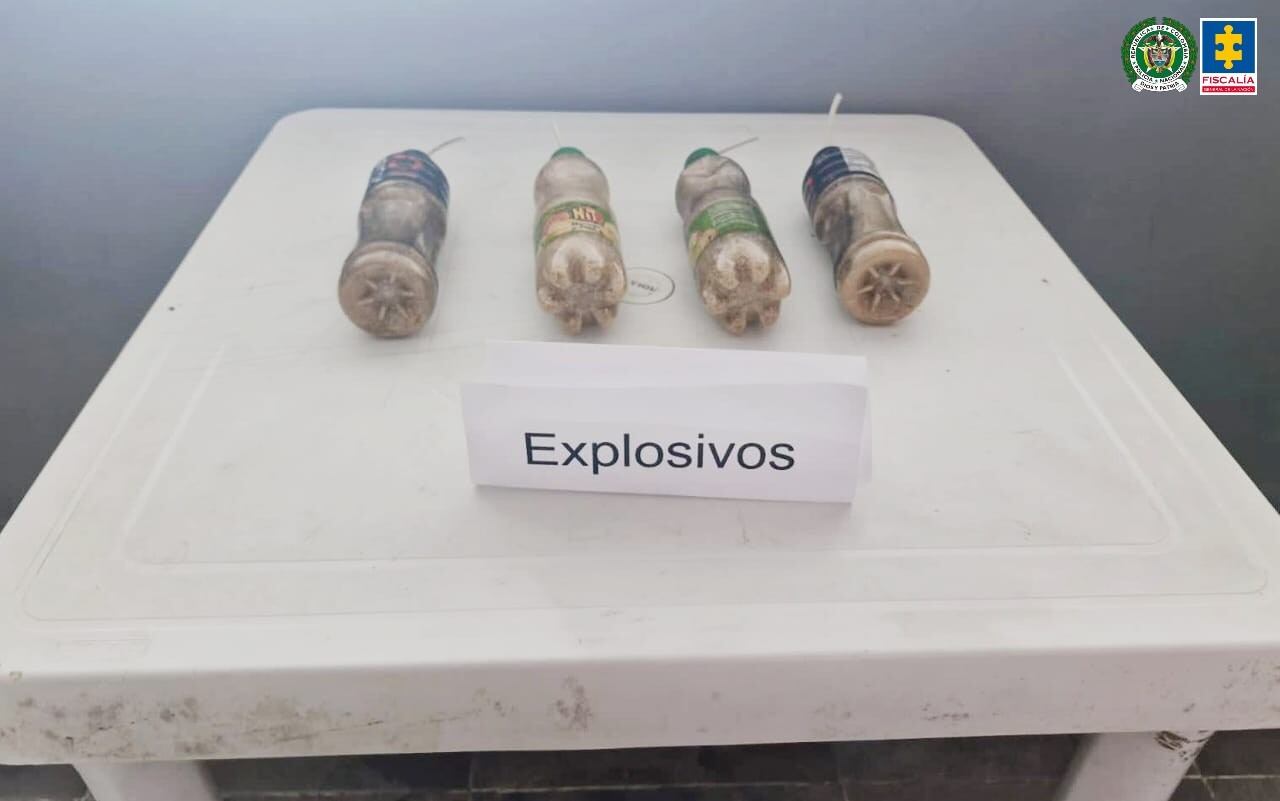 Material probatorio de la Fiscalía, de la incautación de artefactos explosivos artesanales que al parecer iban a ser lanzados a establecimientos comerciales