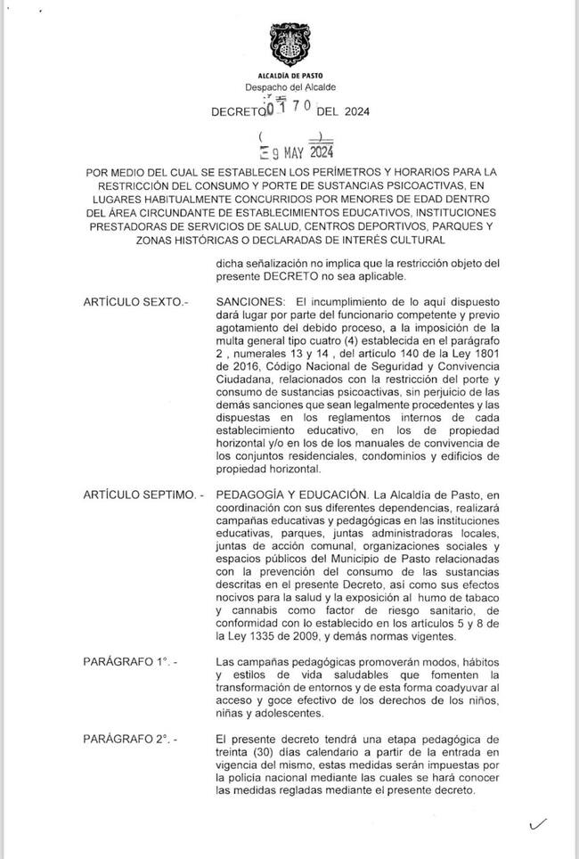 El alcalde de Pasto, Nicolás Toro anunció las nuevas medidas que se ponen en marcha para devolver la tranquilidad en sectores residenciales y prevenir la accidentalidad derivada del consumo excesivo de alcohol.