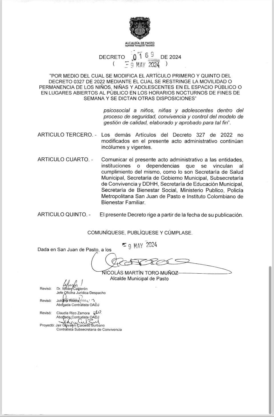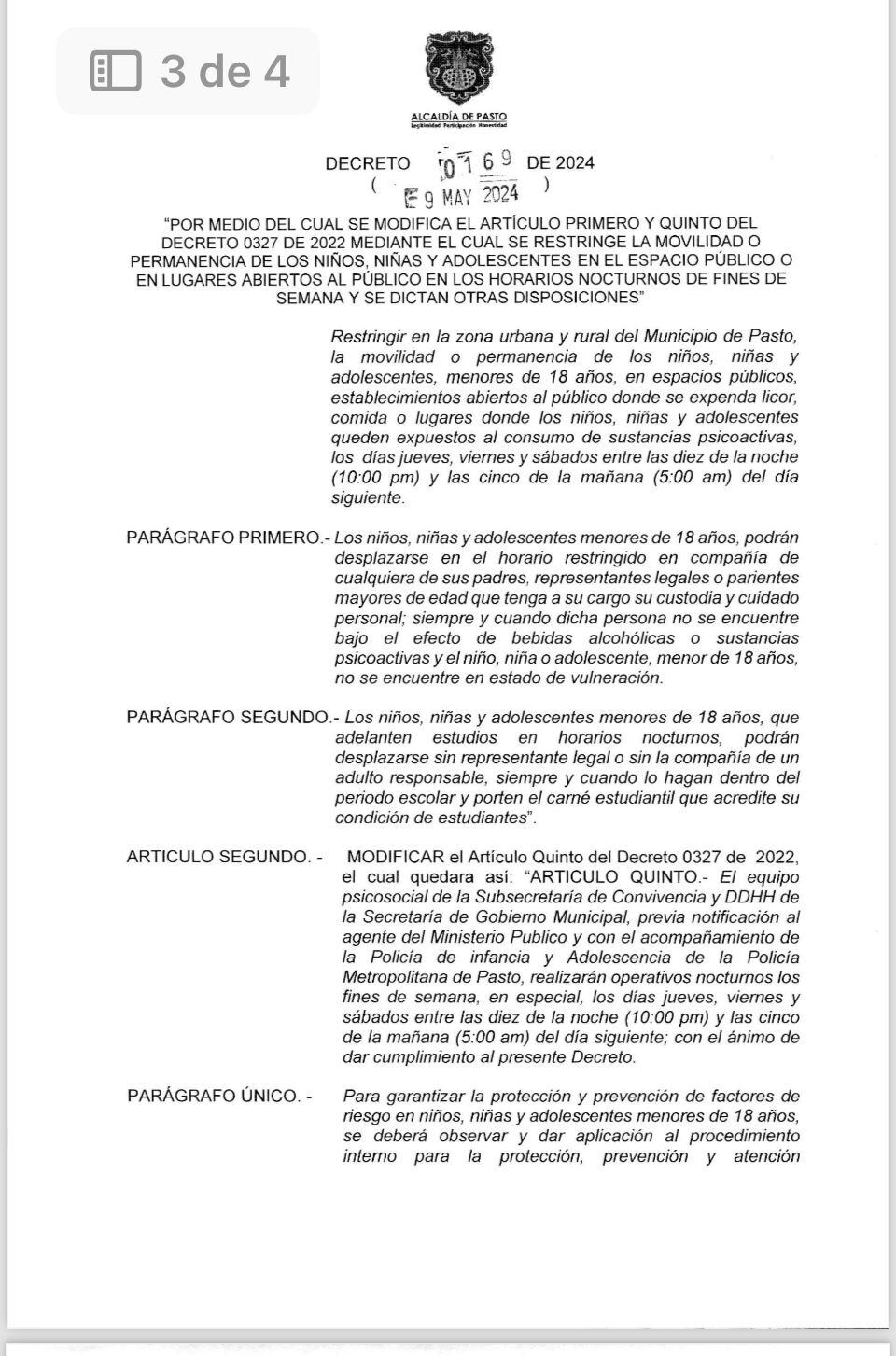 De igual manera se amplía la aplicación del decreto que restringe la presencia de menores en las calles después de las once de la noche, el cual regirá desde los días jueves.