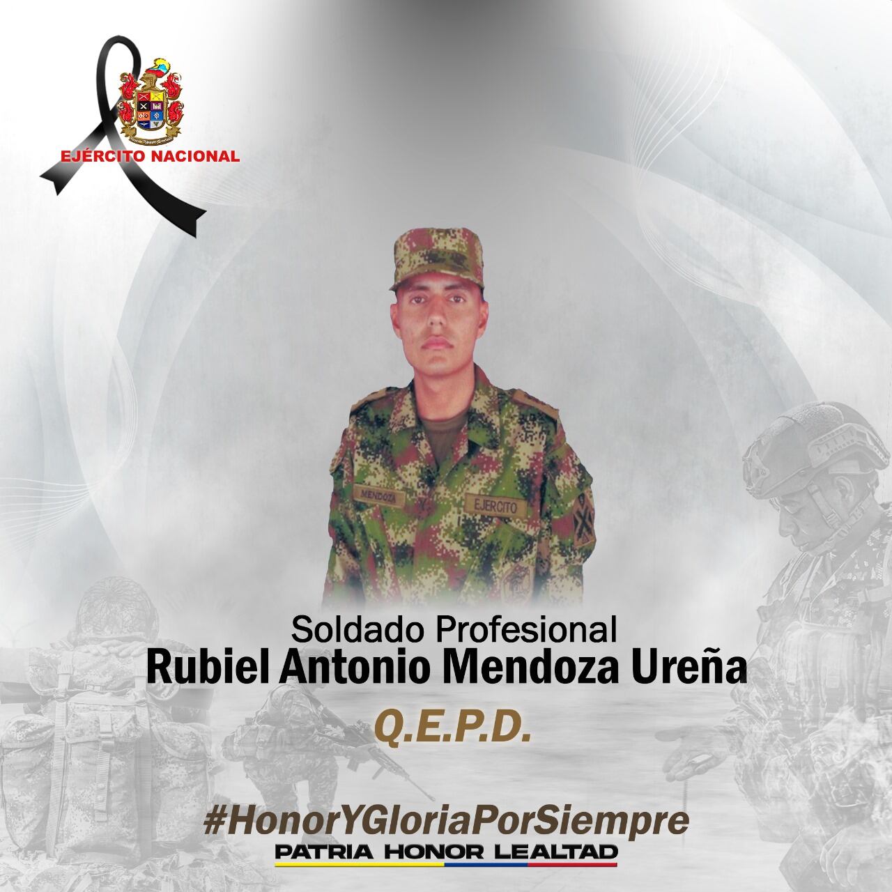 Se trata del soldado profesional Rubiel Antonio Mendoza Ureña, oriundo de San José de Cúcuta, Norte de Santander.