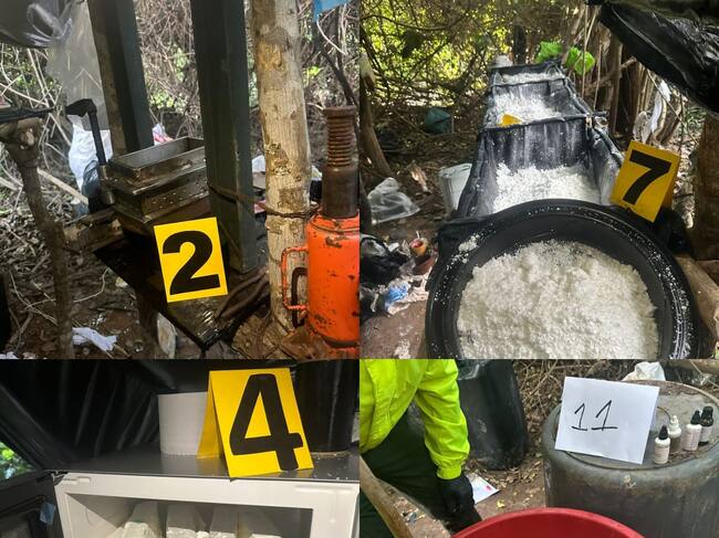 La Policía Nacional en articulación con la DEA y la Fiscalía, desarticuló un laboratorio de procesamiento de clorhidrato de cocaína en zona rural de Cúcuta.