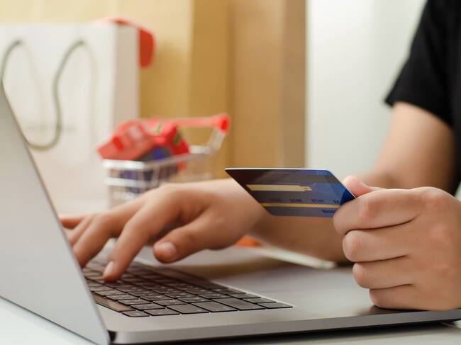 Persona con una tarjeta, escribiendo en una computadora portátil (Foto vía Getty Images) / Sakorn Sukkasemsakorn