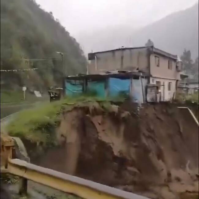 En video quedó registrado el momento en el que debido a las intensas lluvias tres viviendas quedaron a punto de desplomarse en jurisdicción del municipio de Mallama en la vía que conduce al puerto de Tumaco.
