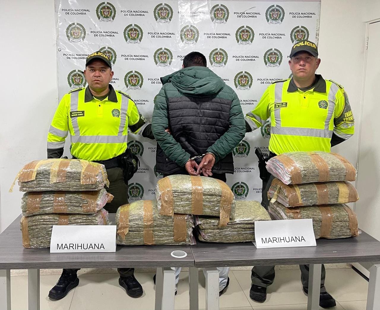 Durante las actividades de inspección y control realizadas por los oficiales del Departamento de Policía de Boyacá, específicamente la Sección de Tránsito y Transporte, en la carretera Tunja - Paipa cerca del peaje de Tuta, se descubrieron 50 kilogramos de marihuana dentro de un vehículo de transporte público que provenía de Bogotá con destino a Sogamoso.