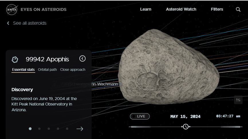 Así luce el asteroide ‘Apofis’ actualmente según una herramienta que la NASA perfeccionó para poder ver diferentes objetos cósmicos en tiempo real y su órbita: