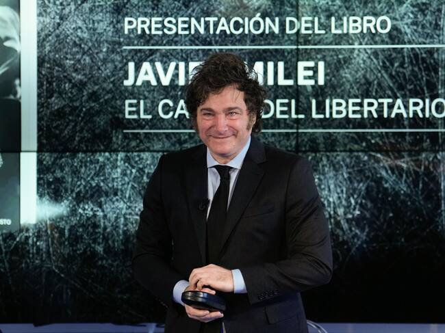 MADRID, 17/05/2024.- El presidente de Argentina, Javier Milei, durante la presentación de su libro El camino del libertario este viernes en el Auditorio del diario 'La Razón', en Madrid. EFE/Borja Sánchez-Trillo / Borja Sánchez-Trillo (EFE)
