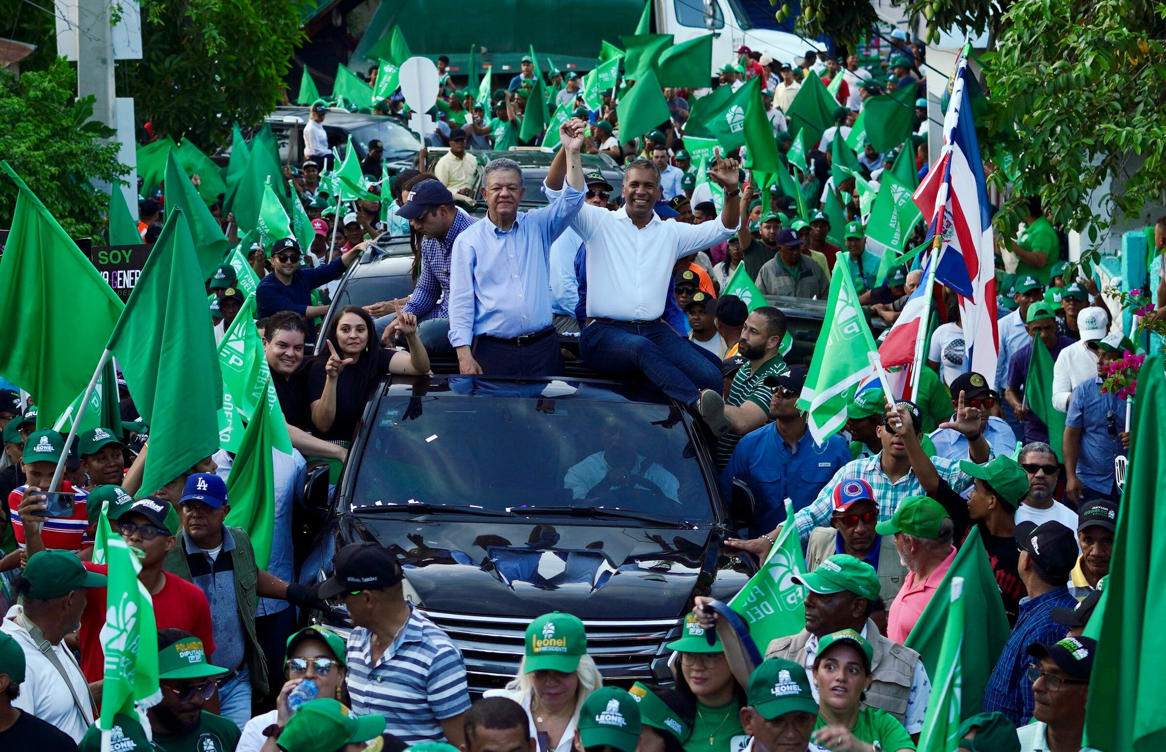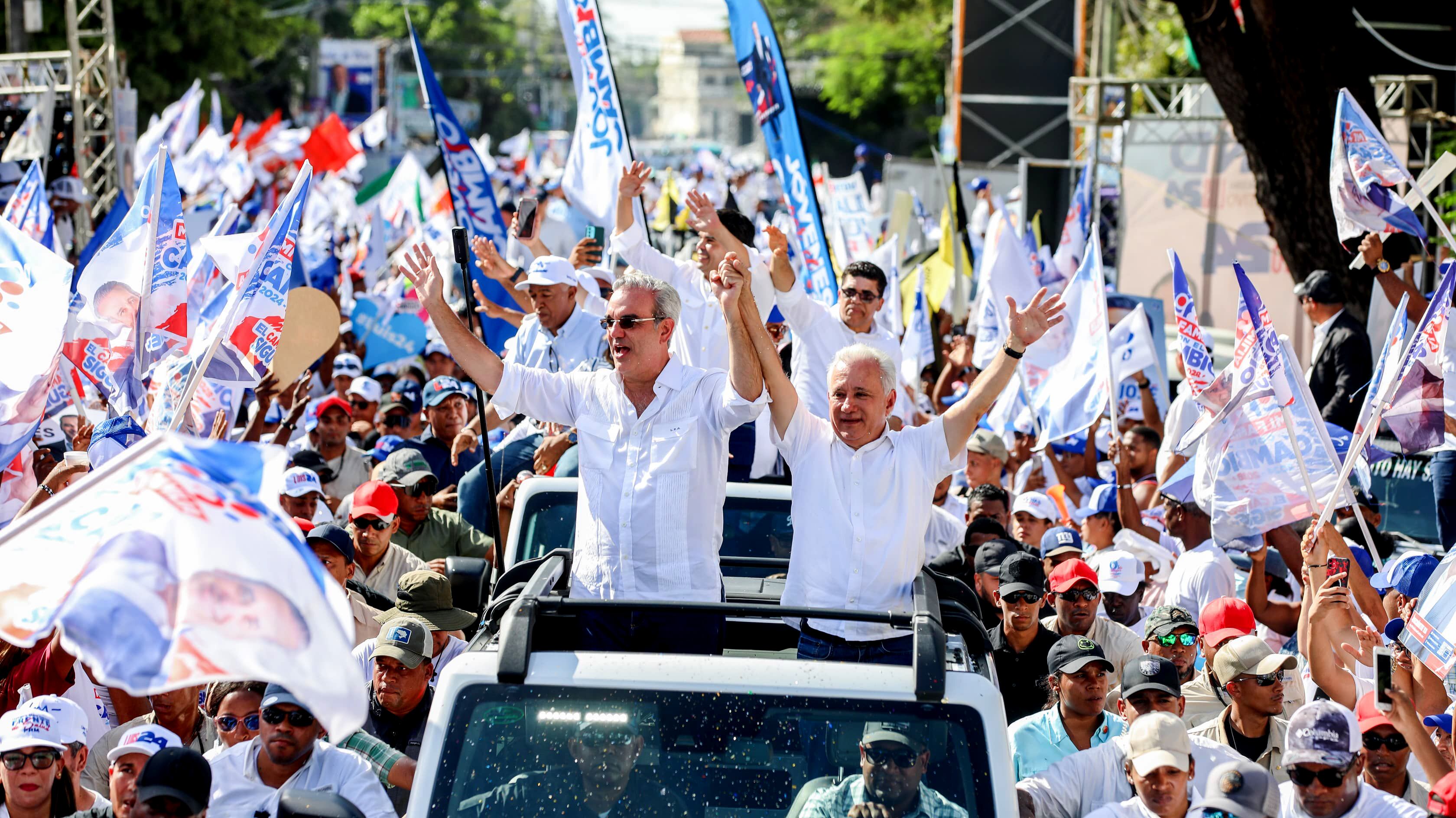 El presidente y candidato a la reelección, Luis Abinader, mientras participa en una caravana durante su campaña electoral. EFE/ Partido Revolucionario Moderno / Partido Revolucionario Moderno