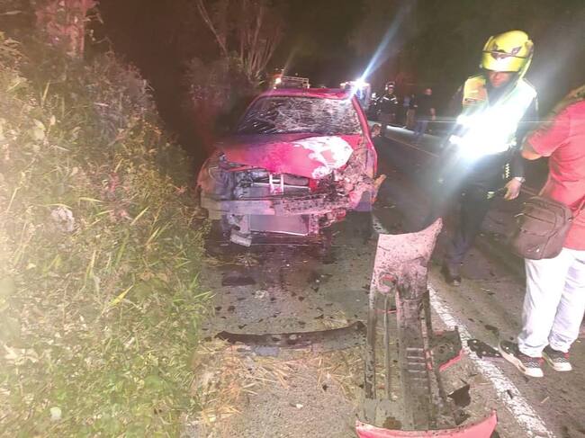 El hecho se registró en la noche del viernes 17 de mayo donde se presenta el choque entre un automóvil, conducido por un hombre de 40 años de edad que resultó ileso, el cual cubría la ruta Quimbaya – Armenia y choca contra una motocicleta, conducida por un ciudadano de 21 años de edad, quien resulta lesionado y es trasladado por bomberos de Montenegro al hospital de la localidad.