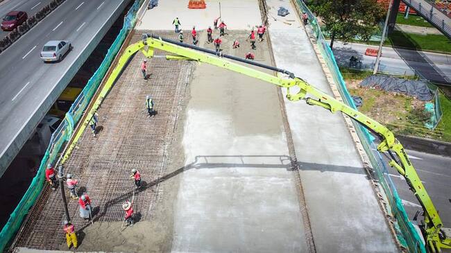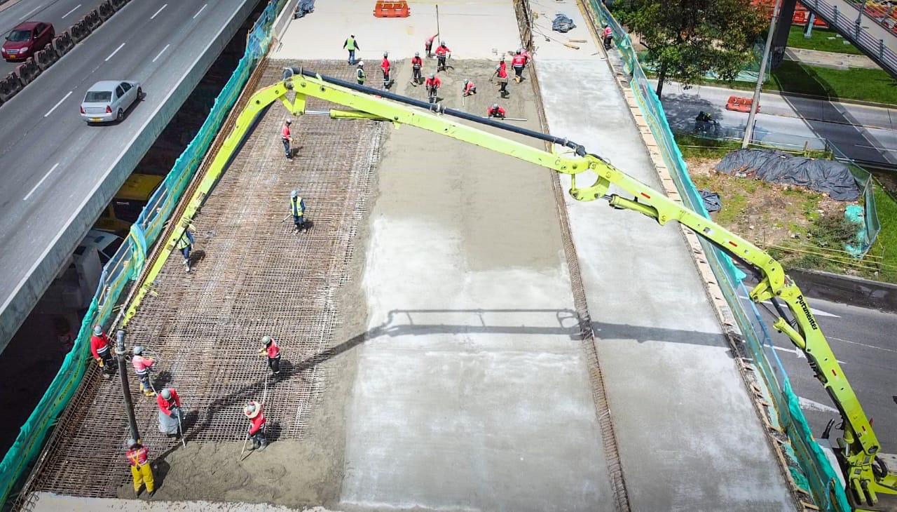 El director del Instituto de Desarrollo Urbano (IDU), Orlando Molano, explicó que se terminó con el vertimiento de 110 metros cúbicos de concreto en el puente vehicular del costado occidental de la Avenida 68 con Calle 26.