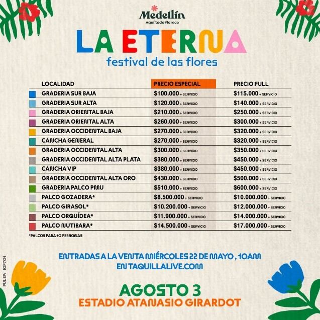 Ya se habilitó la venta de boletería que va desde los 100 mil pesos hasta los 14 millones.