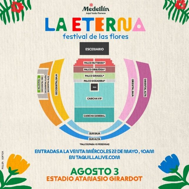 Se trata del primer Festival de las Flores y se realizará en el Estadio Atanasio Girardot y se tendrá un aforo de 42 mil personas.