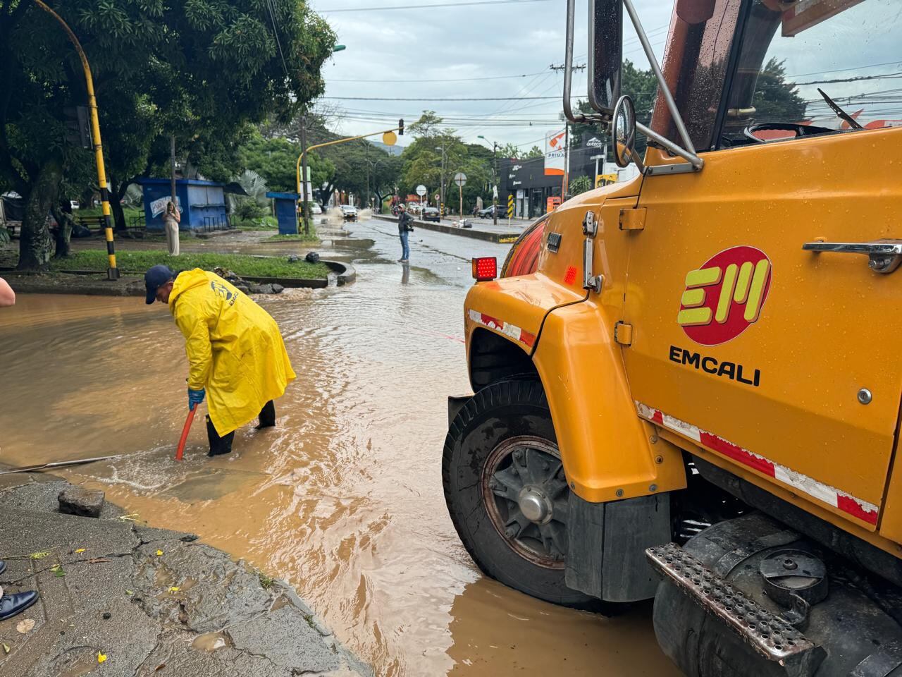 Continúan las operaciones de limpieza en el norte de Cali por lodos en las vías y revisión de las zonas que pudieron ser afectadas por las lluvias de las últimas horas.