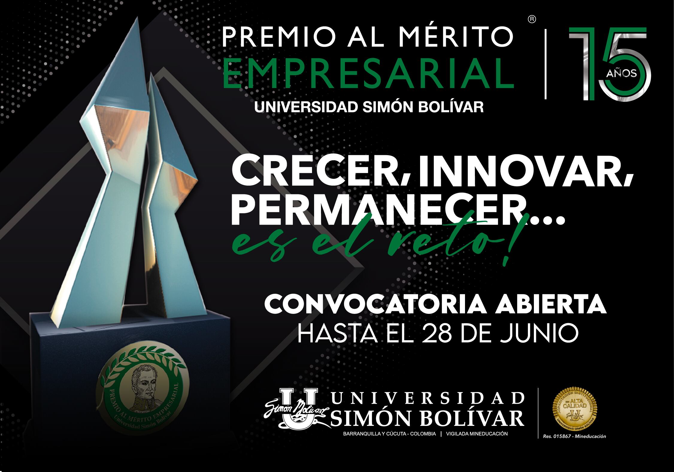 El Premio al Mérito Empresarial (PME) es la gran apuesta de la Universidad Simón Bolívar para contribuir con el crecimiento empresarial y social, así como impulsar la innovación y el desarrollo sostenible. El PME representa una valiosa oportunidad para que las empresas visibilicen sus logros y sean reconocidas por su excelencia empresarial; por lo tanto, es dirigido a las empresas de todos los tamaños y sectores que le apuesten a la transformación productiva y social, a los empresarios motores de la economía colombiana y generadores de empleo.