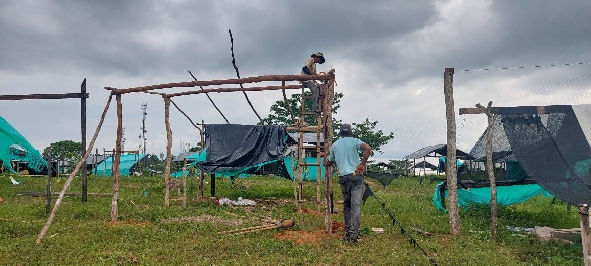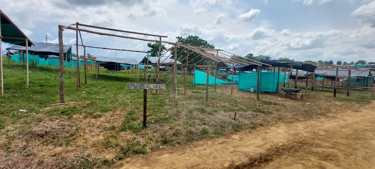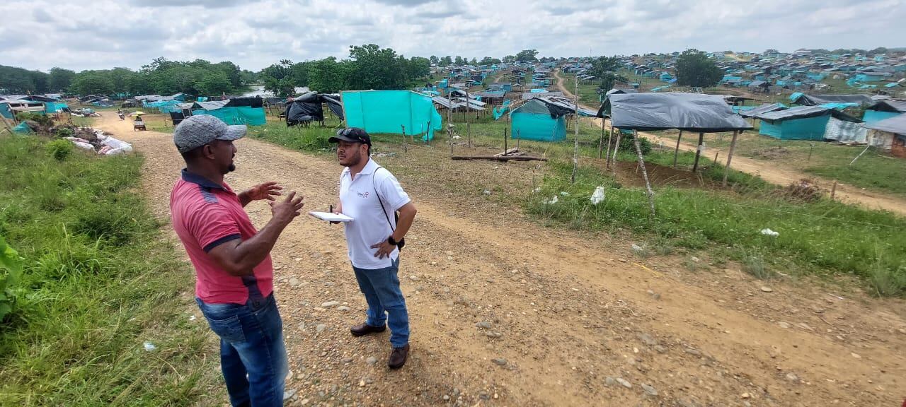 Para quien conoce la municipalidad la invasión o como ellos prefieren llamarle el asentamiento, queda diagonal a la subasta ganadera y a pocas cuadras del comando de la policía de la subregión. Hoy ese caserío tiene un gran número de ranchos levantados, todos con techos de plástico y lonas verdes que por momentos se confunde con la grama. Todos están apuraos a marcar sus casas para que otros no se apropien del terreno y la seña es el nombre y el número de celular en algunos casos. En el lugar hay más de 50 representantes de las comunidades porque cada uno responde por una zona y su orden.