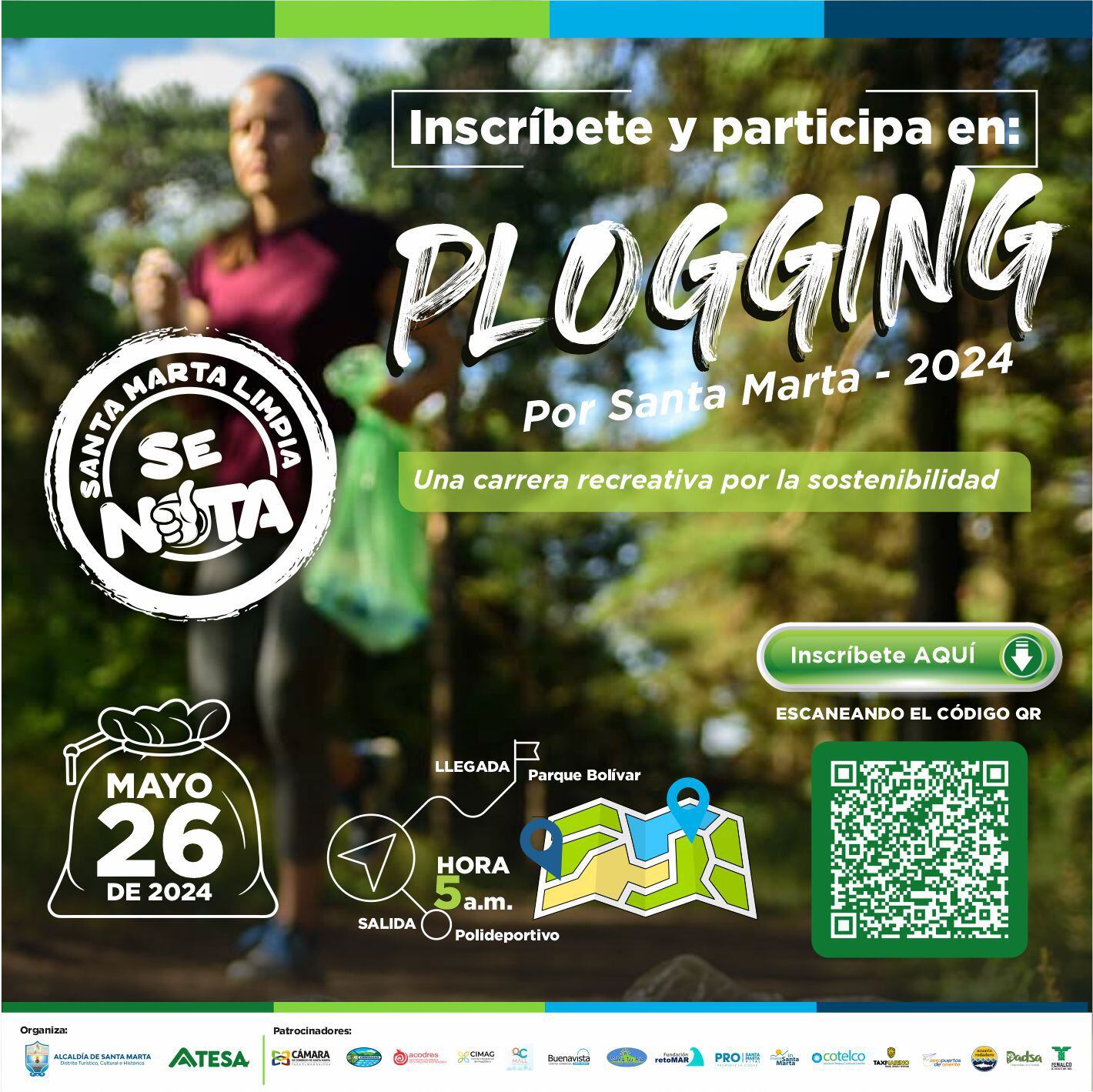 En las redes sociales de todas las entidades y empresas participantes podrán encontrar fácilmente el código QR a través del cual podrán diligenciar la inscripción de forma gratuita y demostrar todo el entusiasmo que genera el cuidar el medio ambiente mientras se ejerce actividad física.