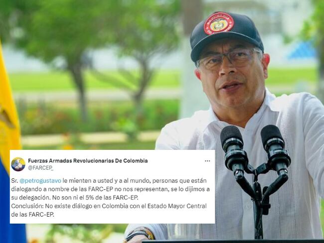 “Sr. @petrogustavo le mienten a usted y a al mundo, personas que están dialogando a nombre de las FARC-EP no nos representan, se lo dijimos a su delegación. No son ni el 5% de las FARC-EP. Conclusión: No existe diálogo en Colombia con el Estado Mayor Central de las FARC-EP.”, se lee en el trino.