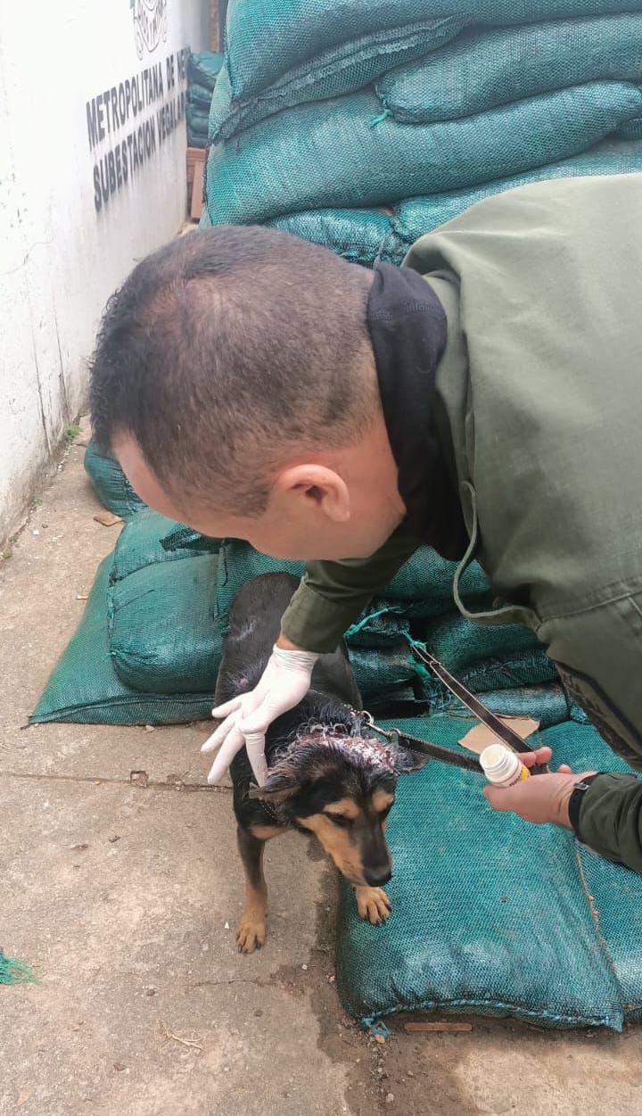 Es así, como en desarrollo de actividades de patrullaje por el casco urbano y sector rural de este corregimiento, los policiales se percatan de la presencia, a un lado de la vía, casi moribundo, de un perrito criollo, el cual presentaba una herida abierta a la altura de su cabeza.