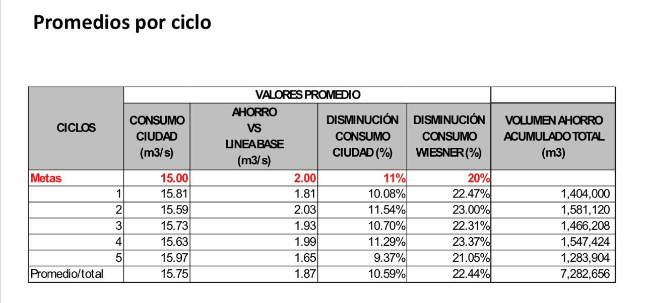 Cifras de consumo y ahorro promedio por ciclo en los primeros 45 días de la medida de racionamiento.