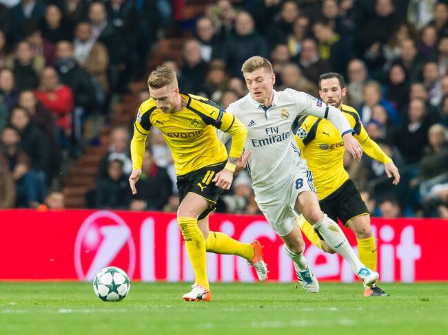 Marco Reus y Toni Kroos durante un duelo de Champions entre Real Madrid y Borussia Dortmund en 2016. (Photo by Alexandre Simoes/Borussia Dortmund via Getty Images) / Alexandre Simoes