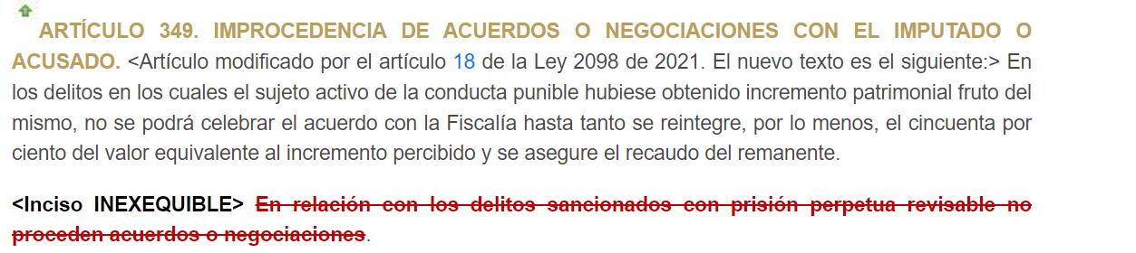 El artículo 349 del Código de Procedimiento Penal, establece que las negociaciones con el imputado o acusado no podrá celebrarse hasta tanto se reintegre el dinero que se apropió.