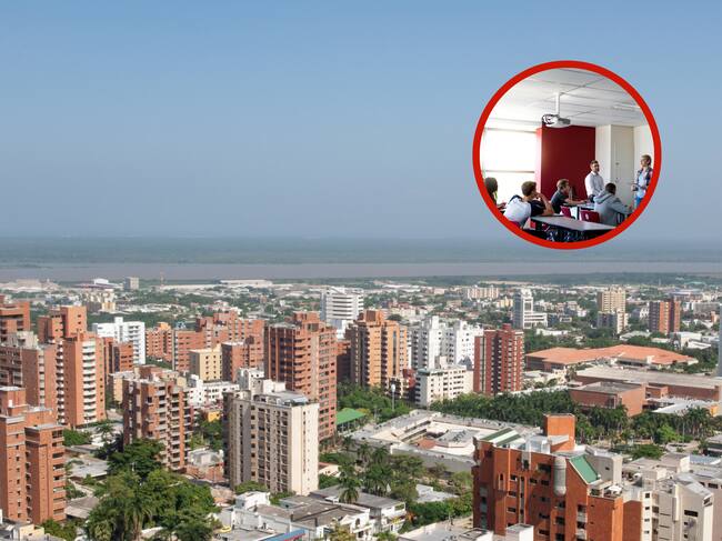 Ciudad de Barranquilla junto a un salón de clase con personas (Fotos vía Getty Images)