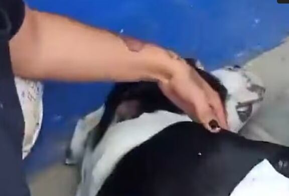 En redes sociales se ve como la mascota quedó gravemente herida.