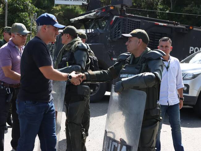 El gobernador Andrés Julián Rendón resaltó la labor de la fuerza pública para atender crisis de orden público en Buriticá. Foto: Gobernación de Antioquia.