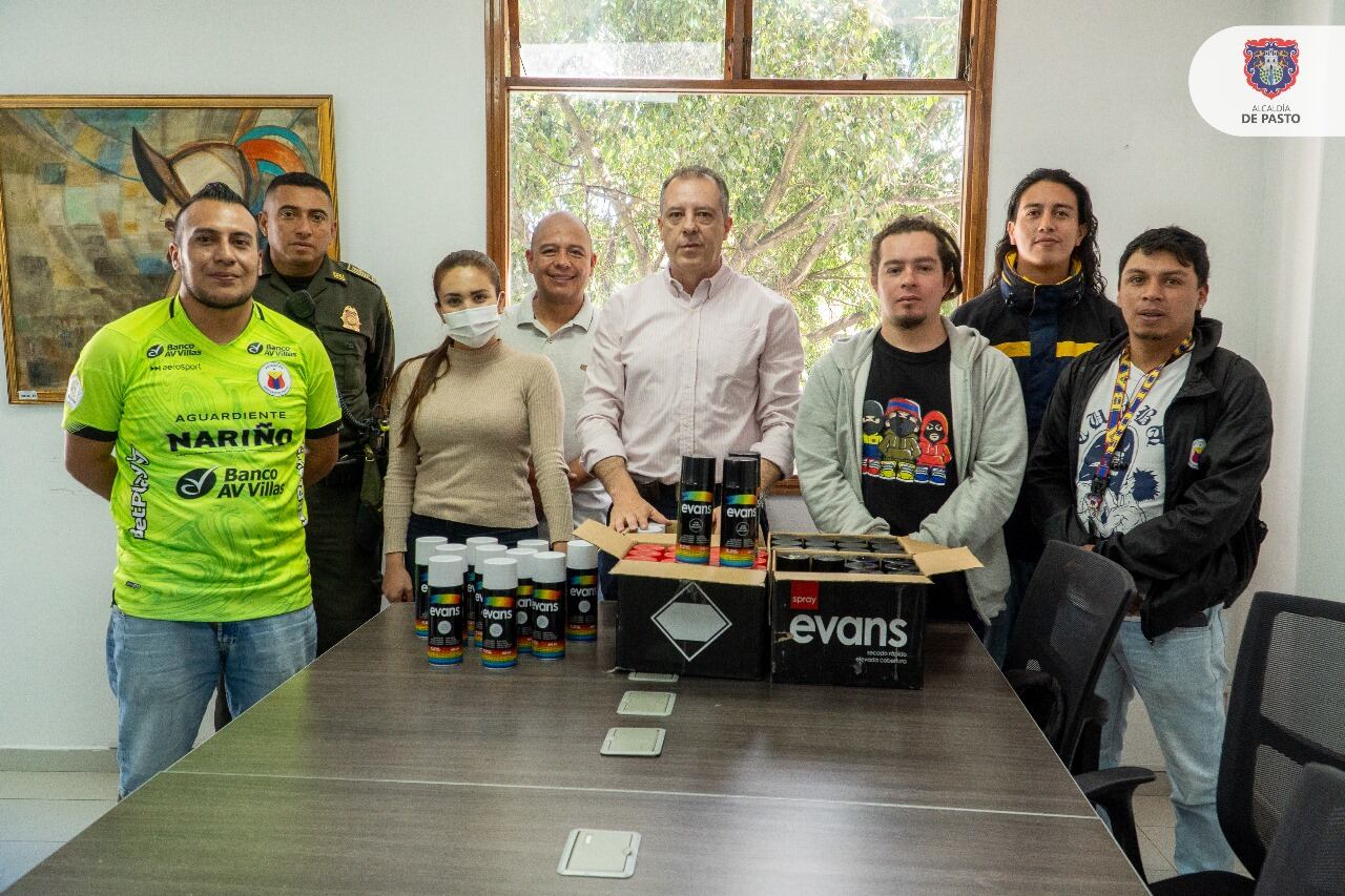 El secretario de Gobierno, Mauricio Rosero, además de lamentar el hecho, entregó pinturas de aerosol a la Fundación Corazón del Aguante para poder restaurar los murales del estadio Departamental Libertad que fueron vandalizados días atrás.