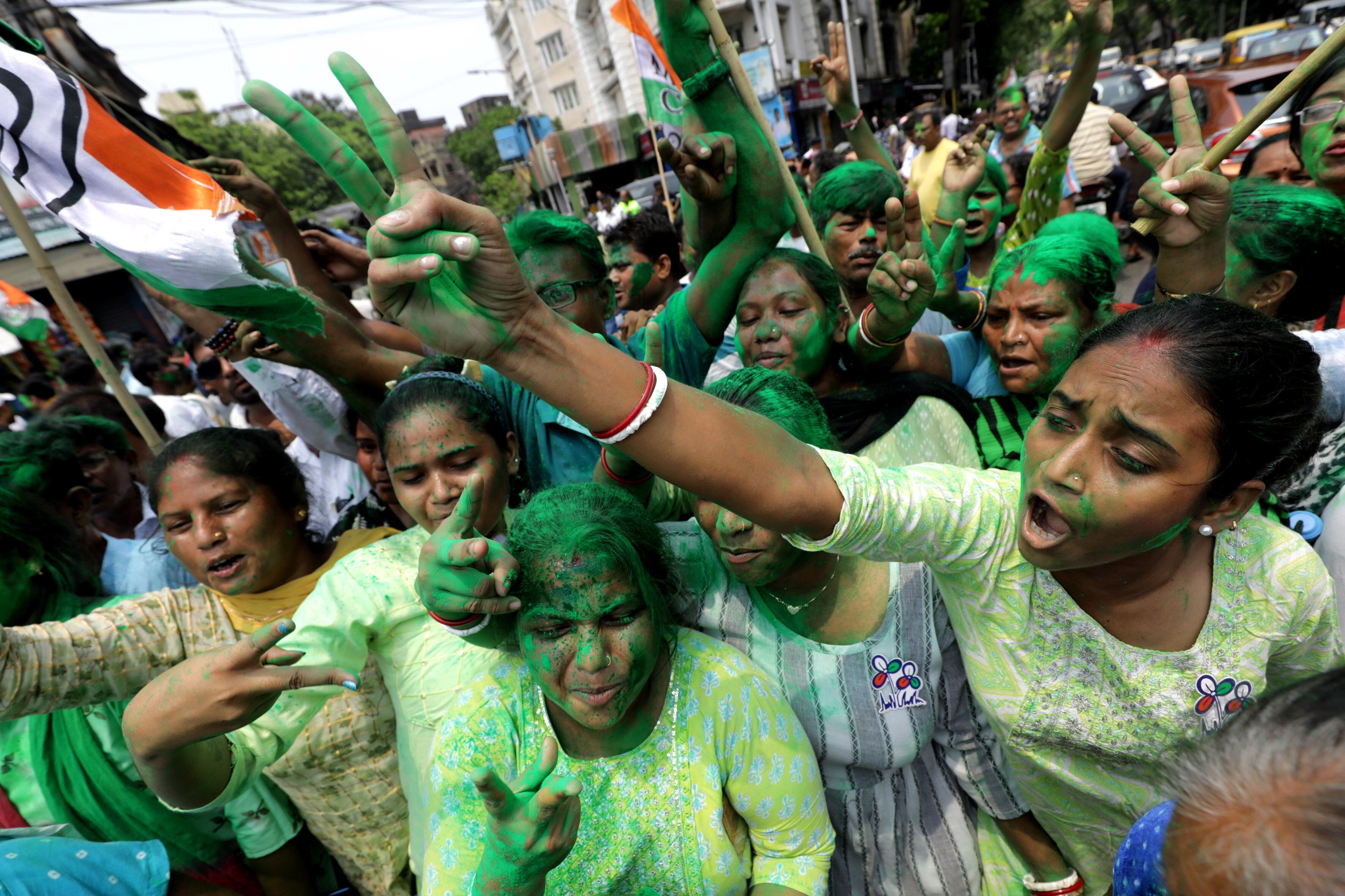 Celebraciones en India tras la revelación de los resultados electorales. EFE/EPA/PIYAL ADHIKARY / PIYAL ADHIKARY