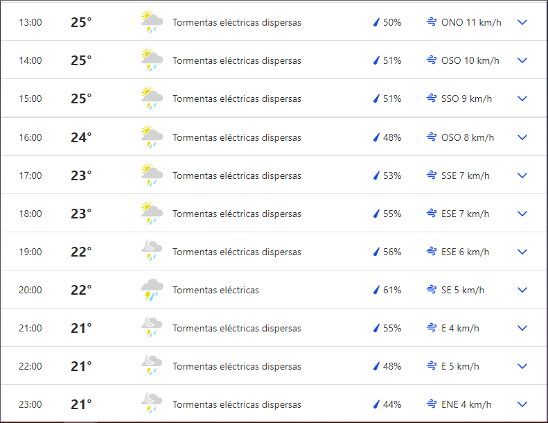 Aquí le dejamos el gráfico del pronóstico desde la 1:00 de la tarde: