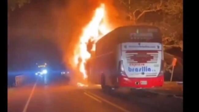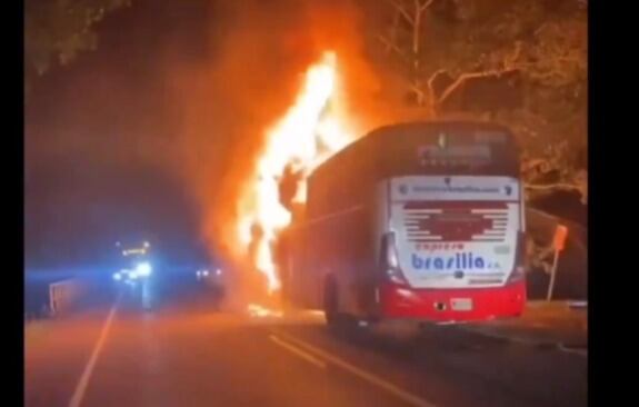 Bus de Brasilia quedó incinerado en vía nacional de Santander