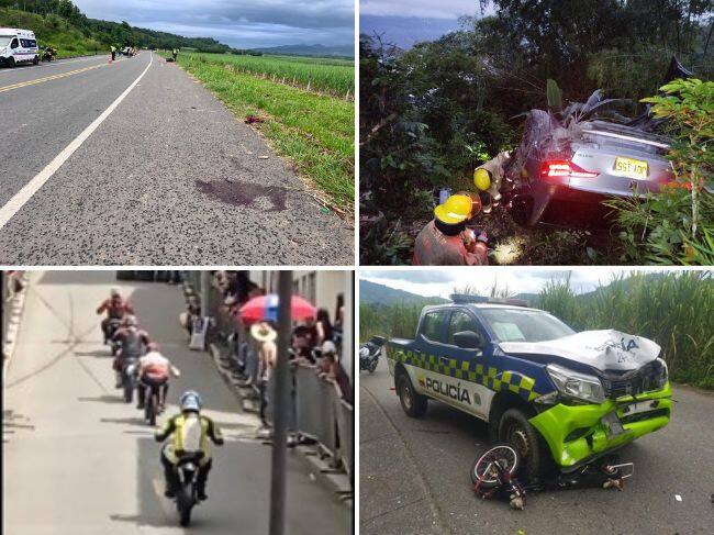 “Los dispositivos de seguridad y de emergencias estaban acordonados, presuntamente, uno de los motociclistas perdió el control del vehículo colisionando contra unas personas que estaban viendo la carrera. En total, 10 personas quedaron heridas y cuatro de ellas con más atención de urgencia, las trasladamos al hospital municipal y, posiblemente, remitidas a Manizales”, explica el capitán Carlos Quintero, del Cuerpo de Bomberos Voluntarios de La Merced.