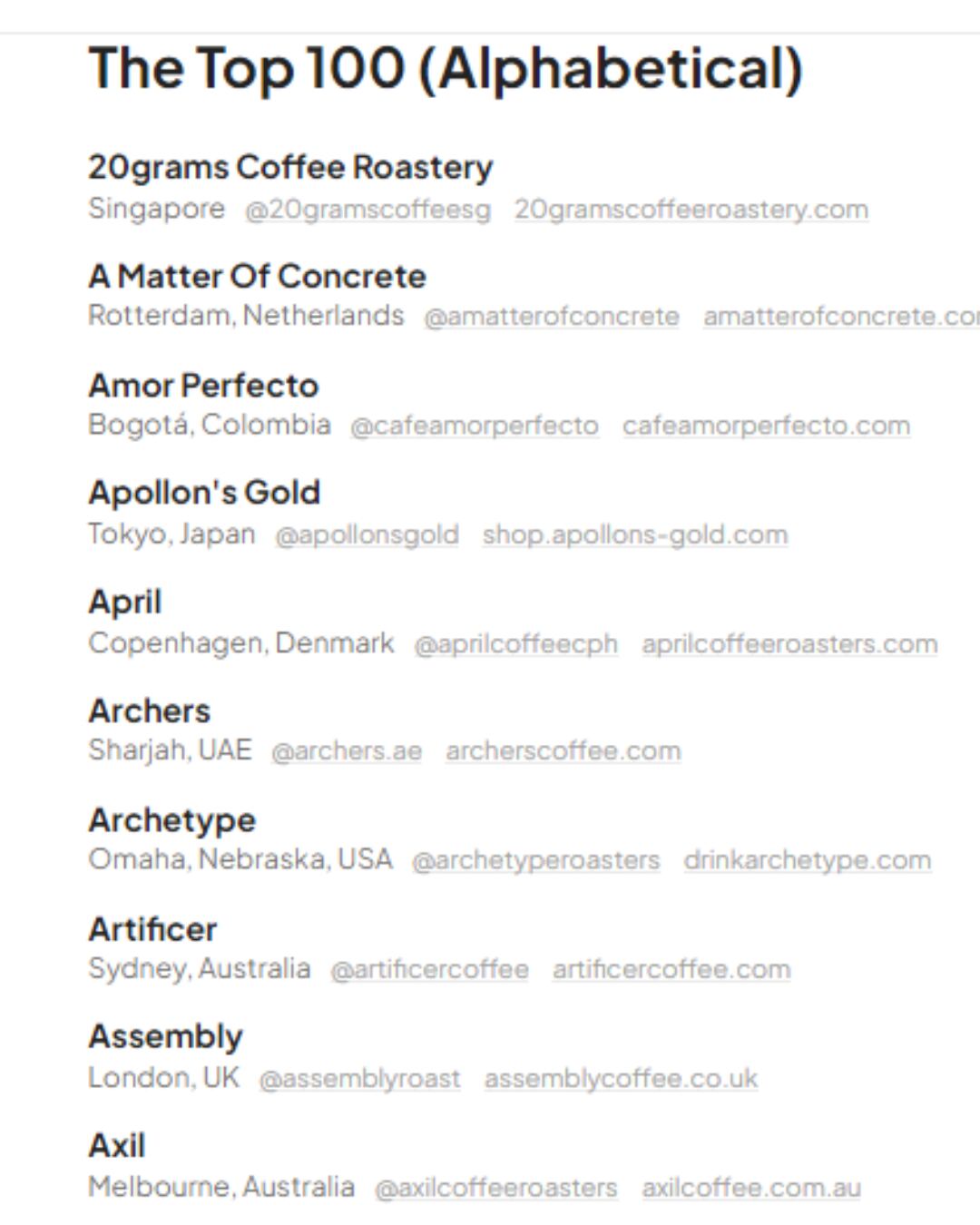 Amor perfecto, en la lista de los 100 mejores tostadores del mundo