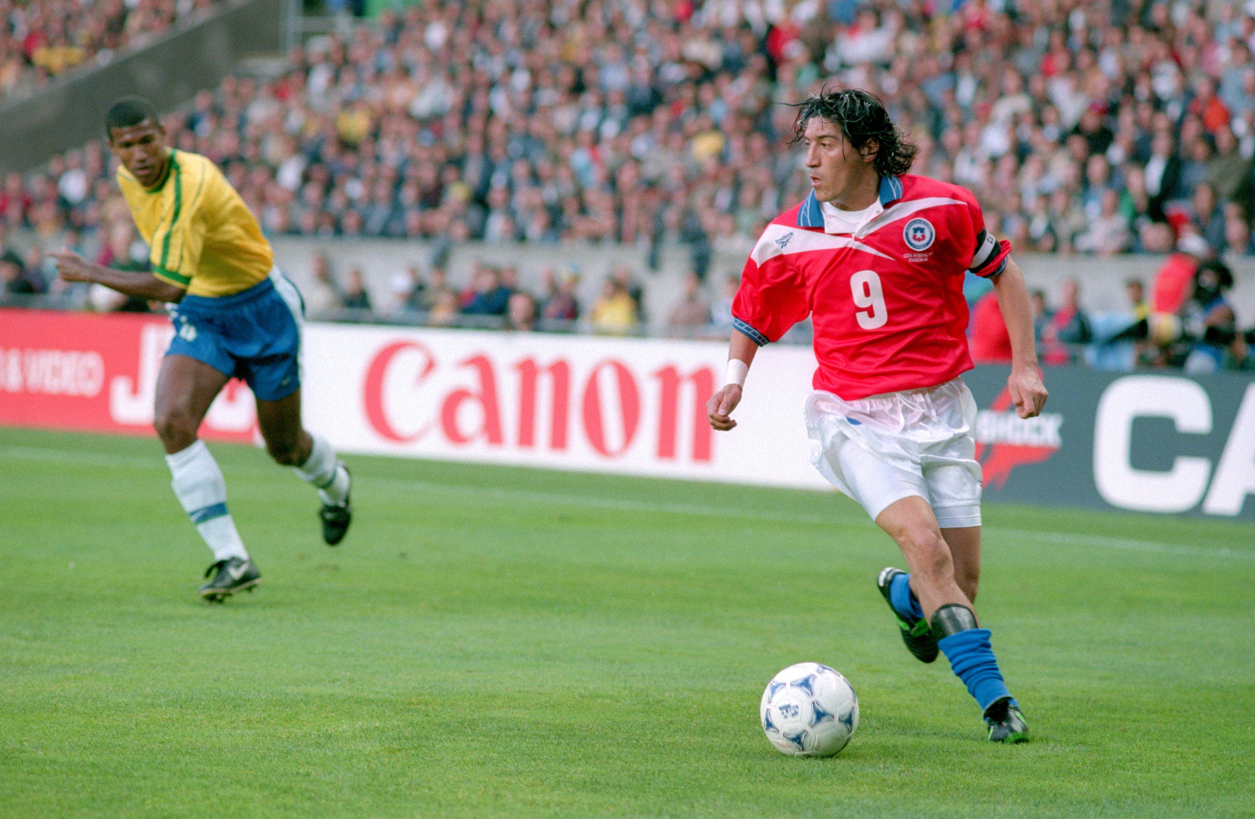 27 June 1998, Paris - FIFA World Cup - Brazil v Chile - Ivan Zamorano of Chile. (Photo by Mark Leech/Offside via Getty Images) / Mark Leech/Offside
