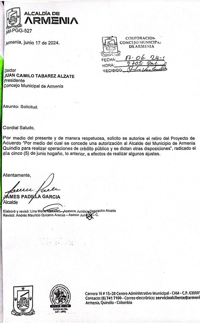 Por su parte en las últimas horas se conoció el documento donde el alcalde de la ciudad, James Padilla solicitó el retiro del proyecto para establecer los respectivos ajustes.