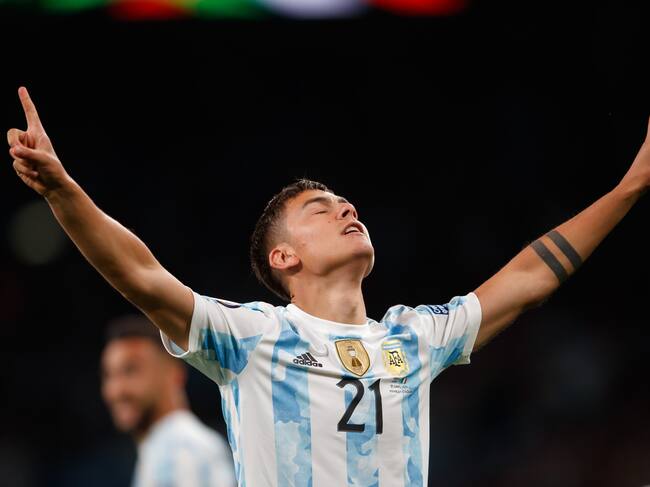 El jugador argentino, Paulo Dybala, celebra un gol durante la Finalissima 2022, el 1 de junio de 2022 en Londres, Inglaterra. (Photo by Marc Atkins/Getty Images) / Marc Atkins