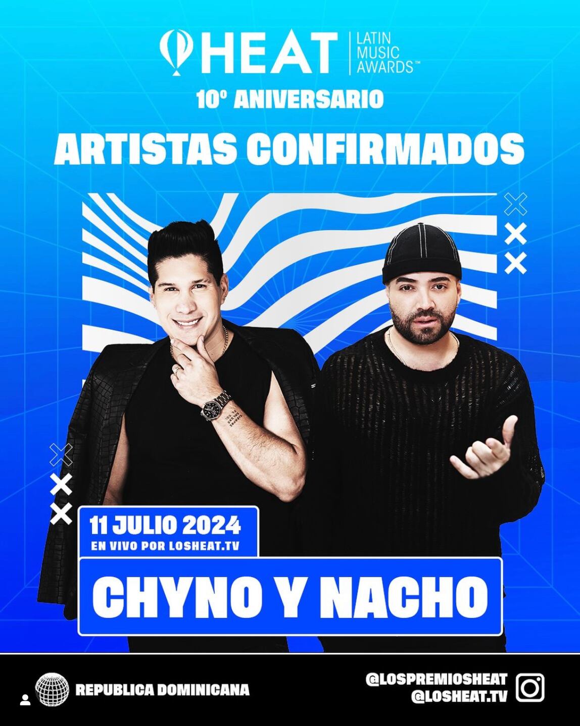 El escenario más caliente de la música latina vivirá una noche sin precedentes, donde por primera vez la alegría del caribe dominicano se vestirá de gala para ser testigo de uno de los reencuentros más esperados, el regreso de Chyno y Nacho, que después de siete años unen nuevamente sus voces para interpretar los éxitos que cambiaron el rumbo de su carrera y hoy se mantienen eternos en la escena musical. “Andas en mi cabeza”, “Niña Bonita”, “Me Voy Enamorando”, entre otros, son algunos de los hits que vibrarán este 11 de julio en Punta Cana, República Dominicana donde grandes figuras del entretenimiento y los artistas que han marcado tendencia, engalanarán una edición para no olvidar.