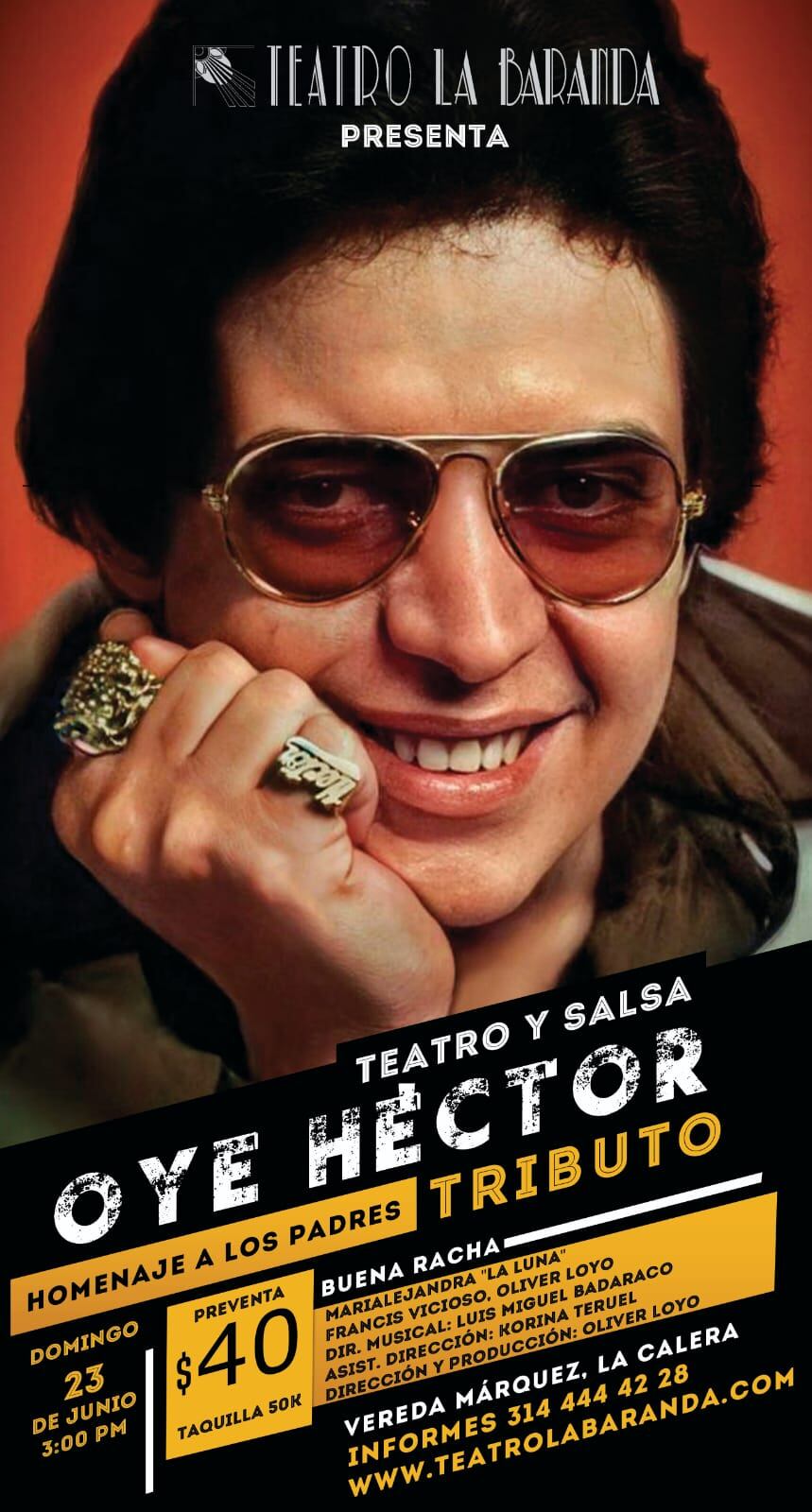 El 29 de junio se cumplen 31 años del fallecimiento de Héctor Lavoe y qué mejor manera de recordar su legado musical en la obra de teatro ‘Oye Héctor’, que se realizará este domingo 23 de junio a las 3 de la tarde en el Teatro La Baranda Campestre, ubicado en La Calera.