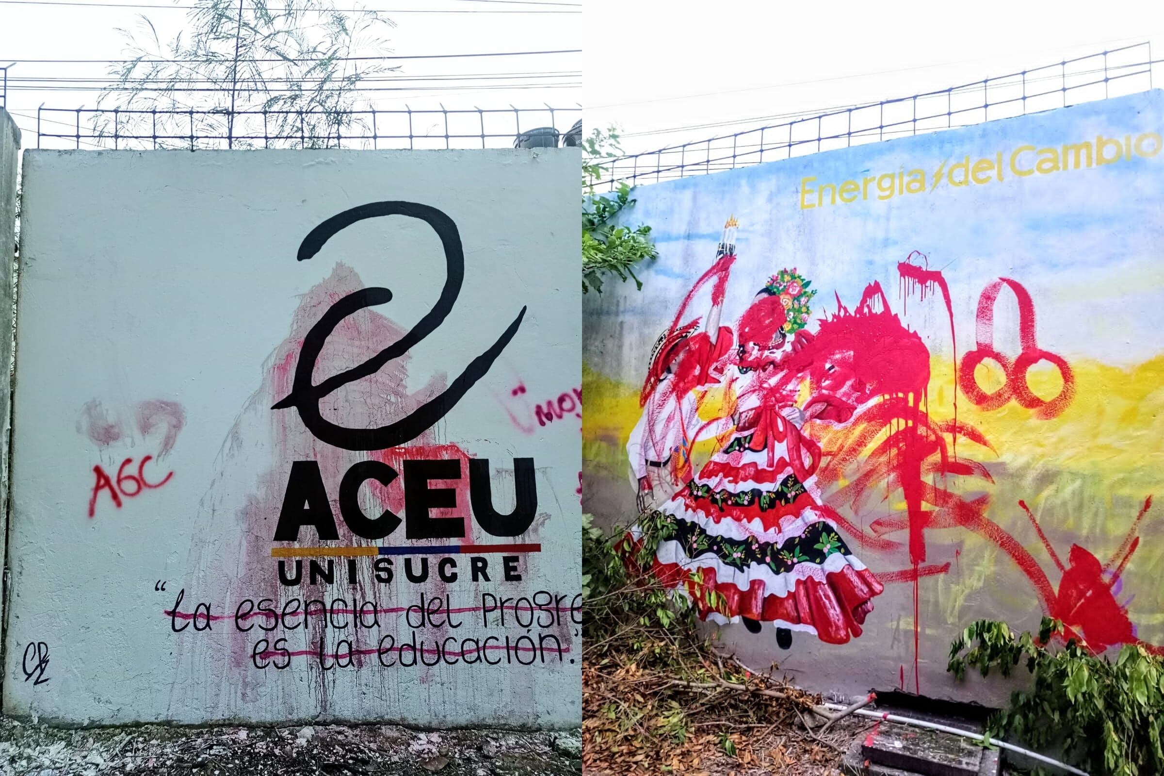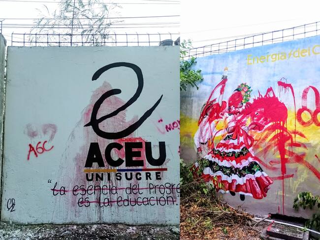 Desconocidos dañaron grafitis internos del movimiento estudiantil en la sede Puerta Roja de la Universidad de Sucre, principal centro de educación del departamento.