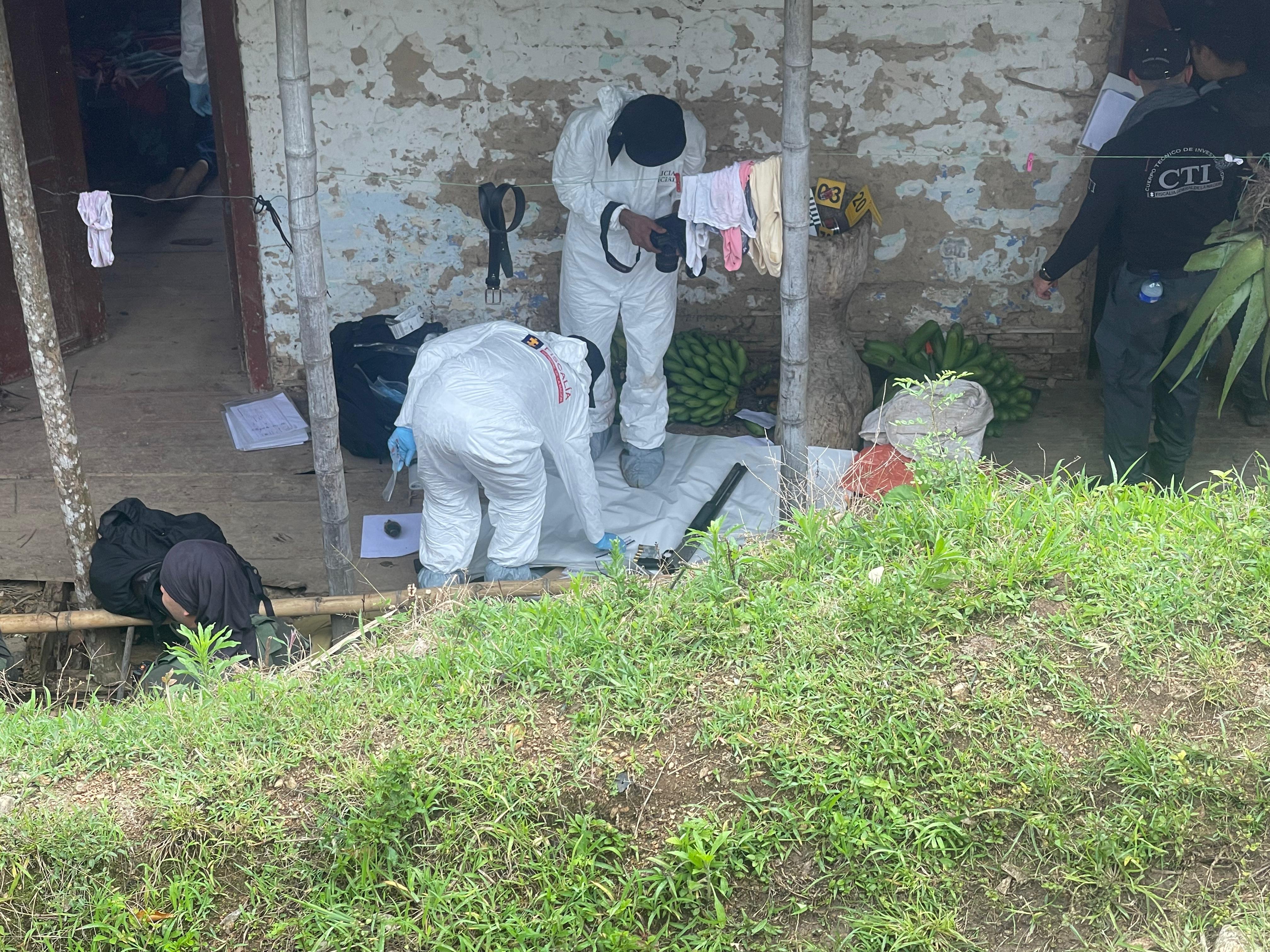 Levantamiento de los cuerpos de los presuntos delincuentes dados en baja en la vereda Catarina, zona rural de Ansermanuevo