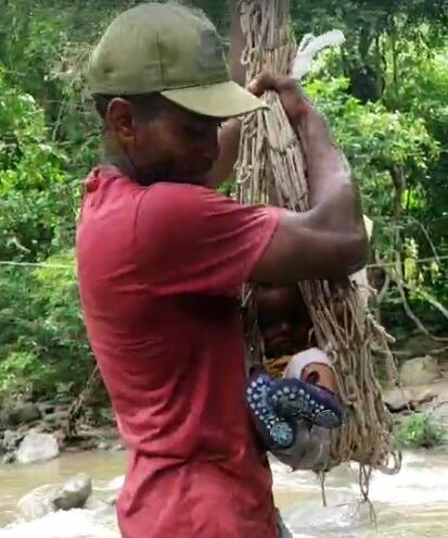 La administración pasada, según informes emitidos a través de comunicados de prensa, les prometió la construcción de este puente, pero, al parecer, todo quedó en papel. Hoy, en pleno 2024, la comunidad viralizó un nuevo video donde un hombre sostiene a una bebé en un ‘canguro’ improvisado.