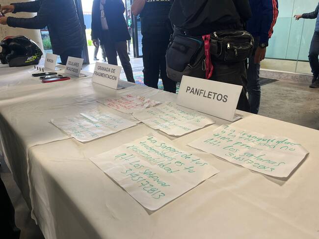 “Un ciudadano nos llama y nos indica de la particularidad de una moto y es así como se va al sector y hacemos el control y llegamos a una residencia en Suba. Encontramos ahí en la residencia la moto, panfletos, celulares, munición y cascos característicos de los videos”, aseguró el comandante de la Policía Metropolitana de Bogotá, José Daniel Gualdrón.