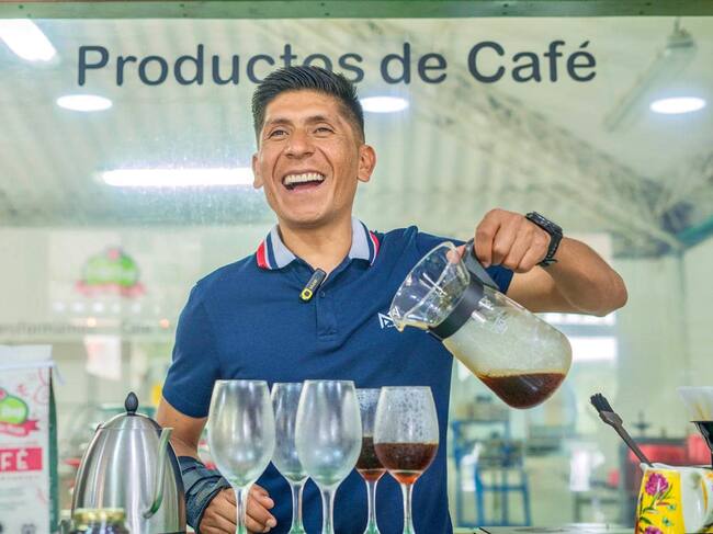 Nairo Quintana disfrutando del mejor café del mundo en el Quindío. Foto Cortesía Gobernación del Quindío