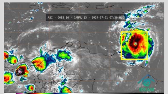 Beryl ha alcanzado la categoría 4 y avanza hacia el oeste-noroeste. Se espera que cruce las Antillas Menores hacia el mediodía de hoy e ingrese al mar Caribe. Según la trayectoria prevista, Beryl pasará al sur de las Antillas Mayores y se estima que el martes 2 de julio esté cerca de La Guajira, lo cual podría causar afectaciones en las condiciones marítimas, incremento de precipitaciones y ráfagas de viento en el norte del país.