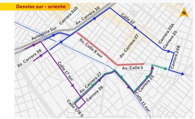 • En la calle octava sur desde la av. NQS hasta la carrera 27, y la calle primera entre las carreras 27 y 25.