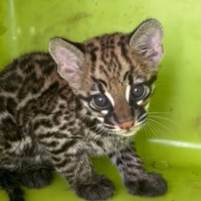 La Corporación Autónoma Regional del Canal del Dique (Cardique) informó que un tierno bebé ocelote (Leopardus pardalis) fue rescatado en Arjona, norte de Bolívar, después de ser encontrado acorralado por dos perros y sin la compañía de su madre.