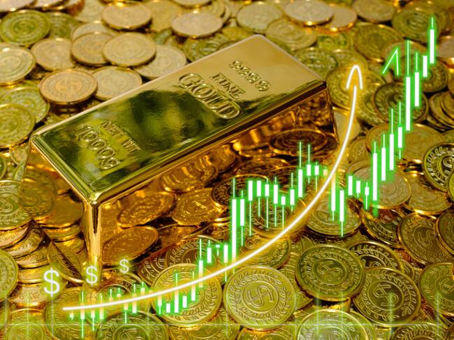 Lingote de oro. monedas e ilustración de cifras (Foto vía Getty Images).