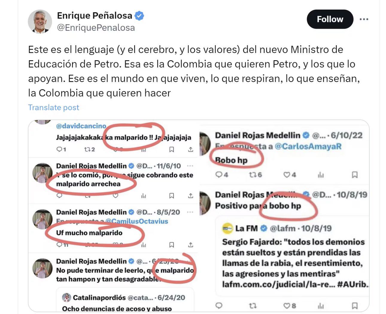El nombramiento de Daniel Rojas en el Ministerio de Educación Nacional ha levantado una enorme polémica por la publicación de mensajes suyos en las redes sociales plagados de expresiones soeces.