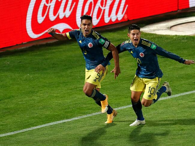 Radamel Falcao y James Rodríguez (Photo by Alberto Valdes-Pool/Getty Images) / Pool